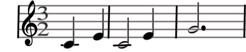 Toujours du 3 temps, mais là, il y a une blanche 'pointée', elle vaut 3 temps à elle seule.