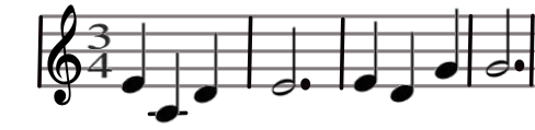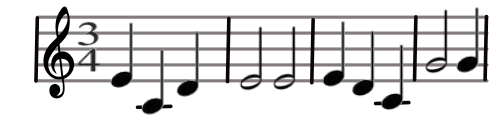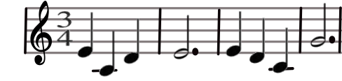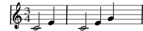 Une mesure à 3 temps dont la noire vaut 1 temps est signée 3/4.