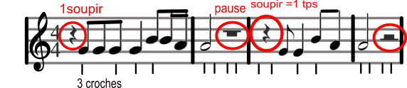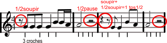 Attention aux silences. Soupir=1 temps; 1/2 pause=2 temps.